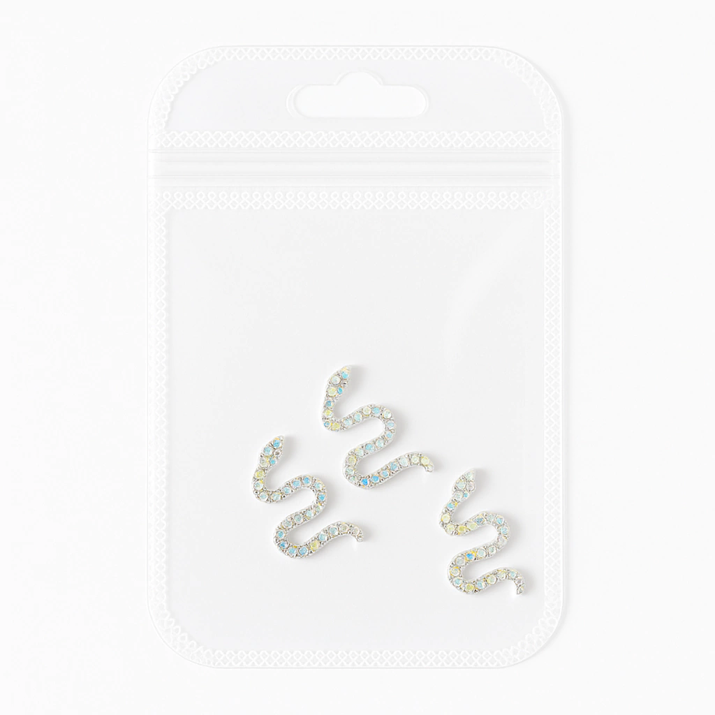 Dale un toque único y brillante a tus creaciones con este par de apliques en forma de serpiente. Están hechos con strass tornasol que refleja múltiples colores según la luz, aportando un efecto llamativo y elegante. Ideales para personalizar fundas, bijou, agendas, accesorios o proyectos de resina.