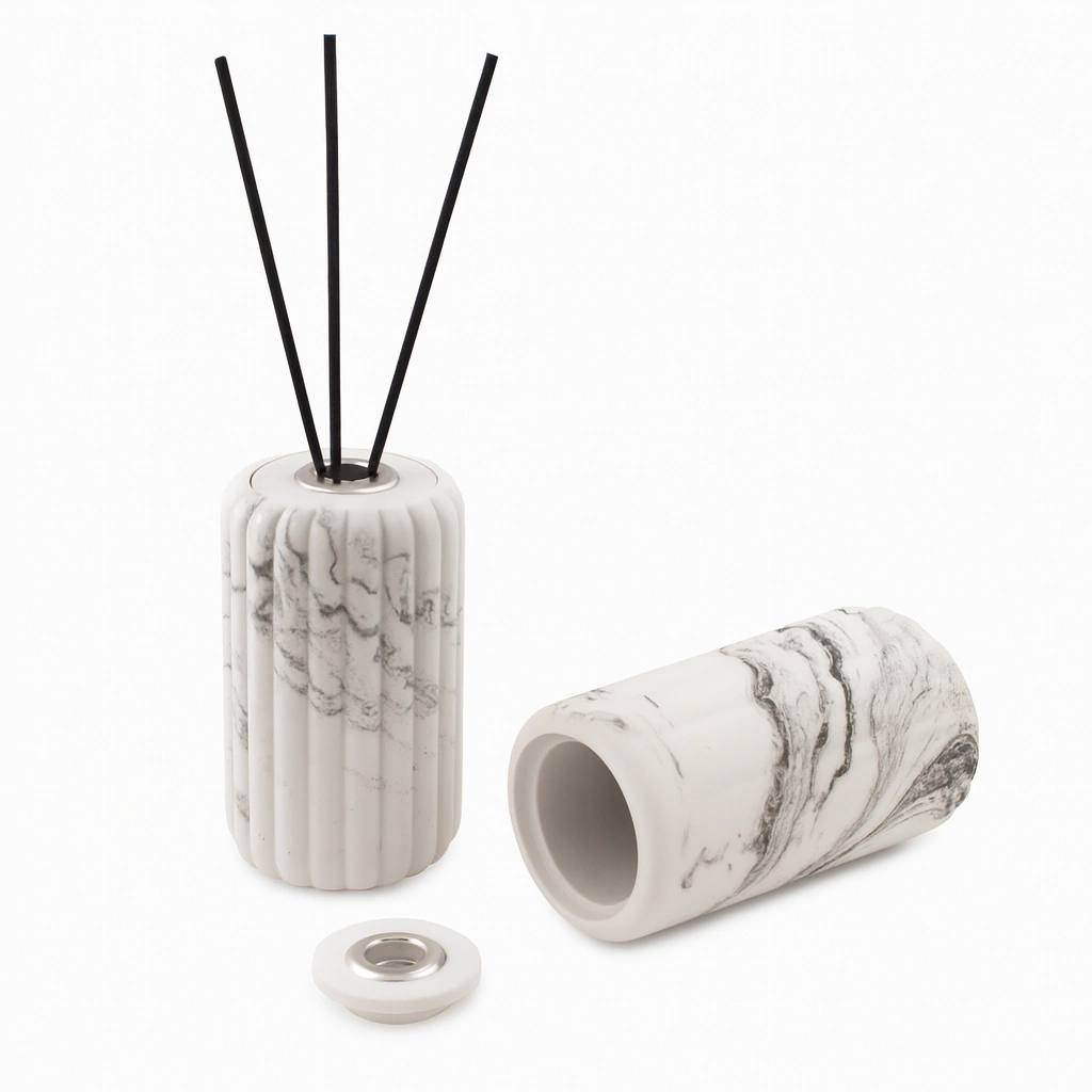 Este molde de silicona cilíndrico con diseño estilo mármol es perfecto para crear piezas modernas y elegantes, ya sea como floreros decorativos, porta-difusores de aroma o contenedores. Su forma acanalada y el acabado tipo mármol permiten obtener resultados sofisticados y únicos.